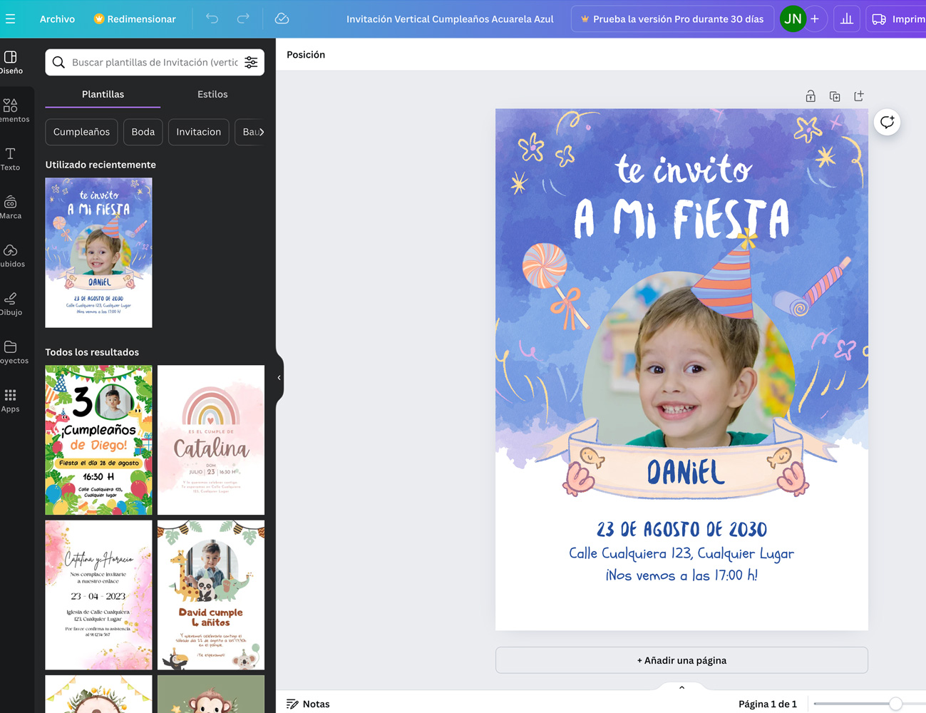 Descarga la invitacion, rellénala con los datos de tu fiesta y…